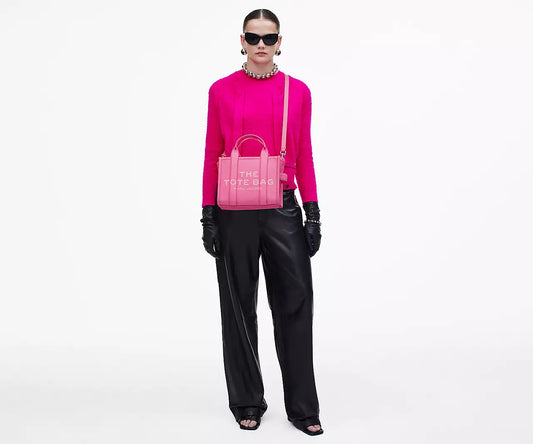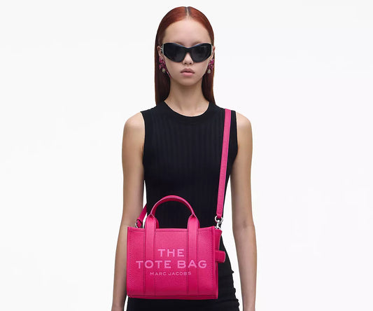 THE LEATHER SMALL TOTE BAG- Hot Pink
