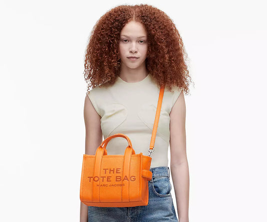 THE LEATHER SMALL TOTE BAG- Tangerine