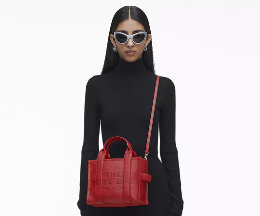 THE LEATHER SMALL TOTE BAG- True Red