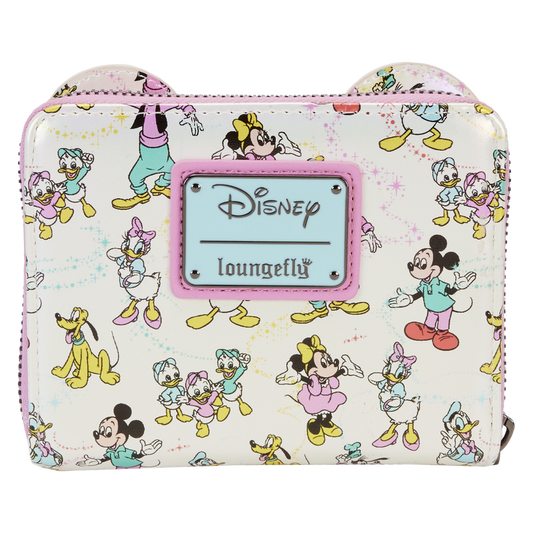 Disney100 Mickey & Friends Classic All-Over Print Iridescent Zip Around Wallet