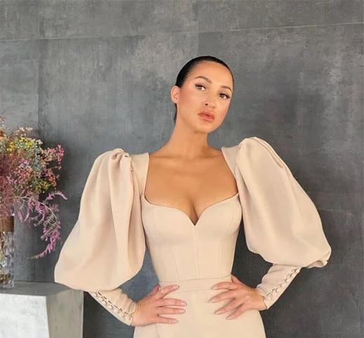 Vestido~ Escote de Corazón con Mangas Champagne